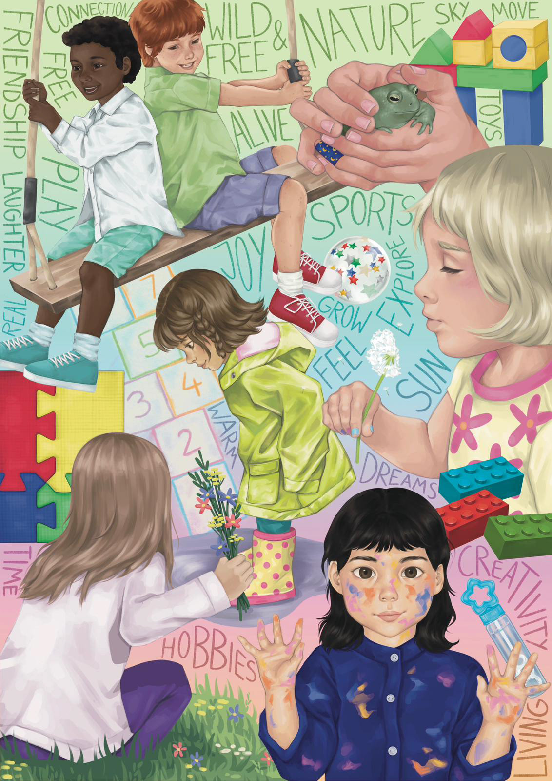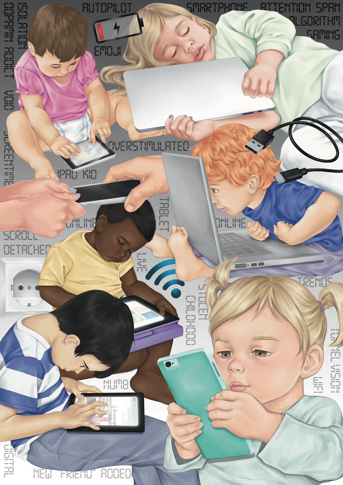 „Kindheit im digitalen Wandel“ thematisiert Erziehung in einer zunehmend digitalen Welt. Zwei illustrative Collagen stellen eine bildschirmfreie Kindheit einer Kindheit mit übermäßiger Mediennutzung gegenüber. Das Projekt versteht sich als visueller Denkanstoß für Eltern, den Umgang mit digitalen Medien in der frühen Kindheit zu reflektieren.